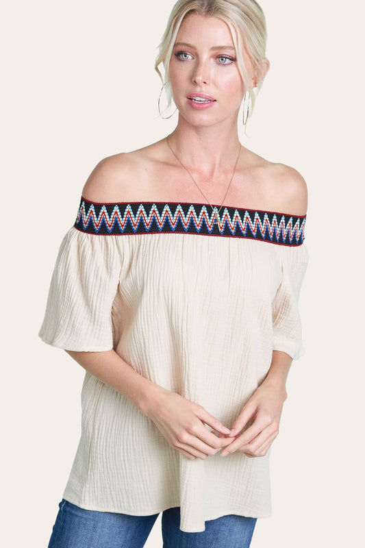 Beige Blouse with multi Color Band